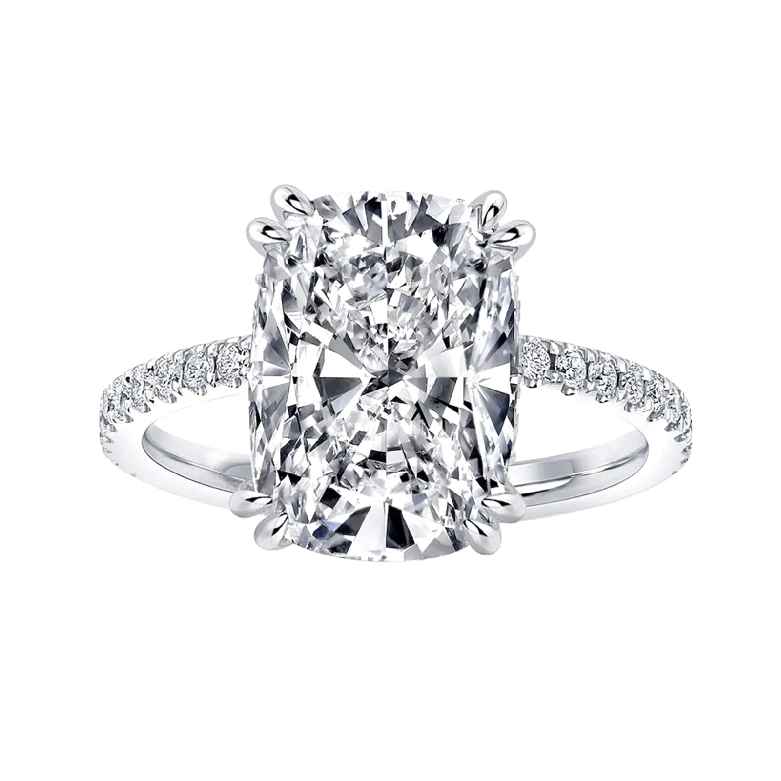 Effinny 4.0ct Elongated Cushion Cut Engagement Ring for WomenWhite Gold Plated Sterling Silver Simulated Diamond Promise Ring(Size:10)