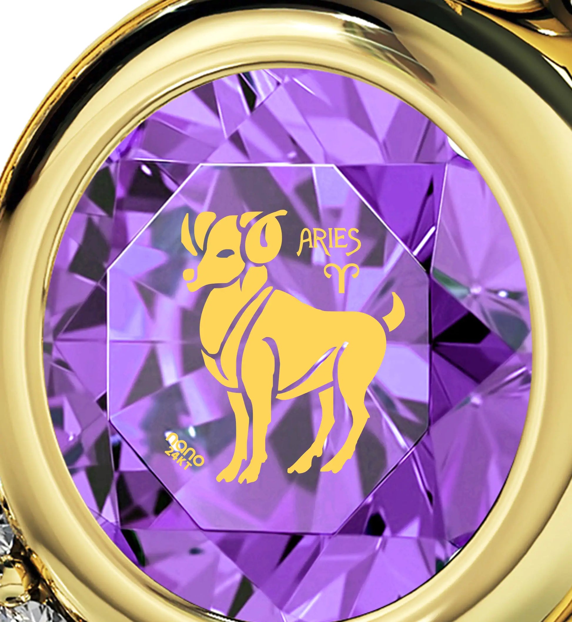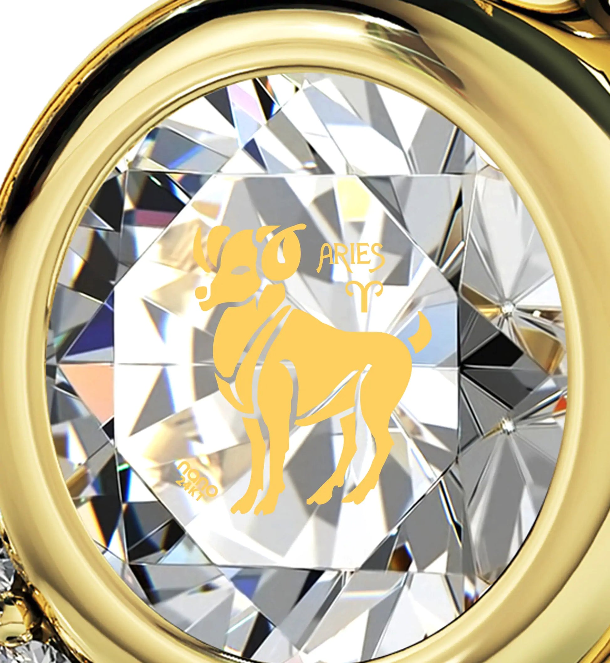 Gold Plated Silver Aries Necklace Zodiac Heart Pendant 24k Gold inscribed on Crystal