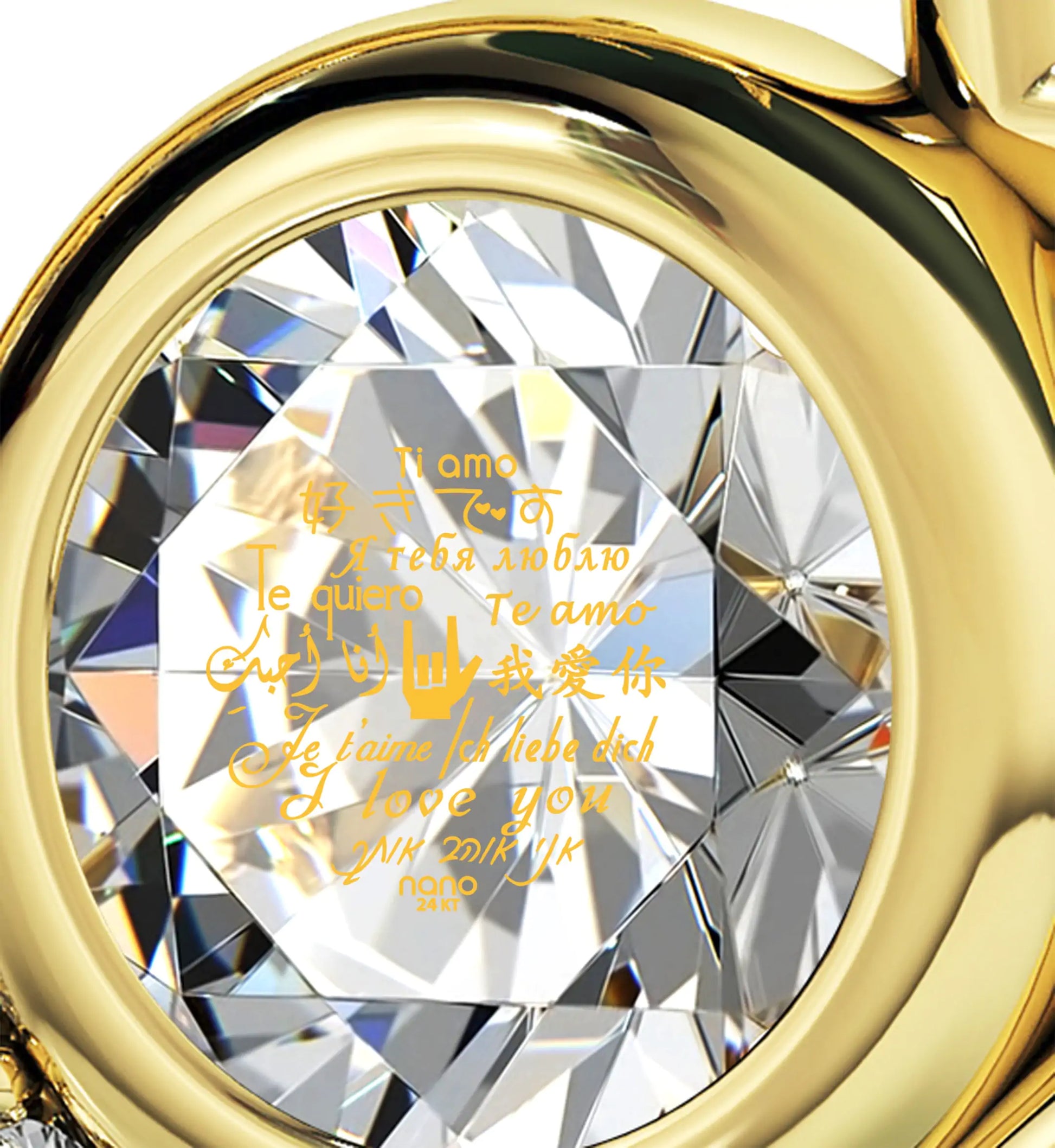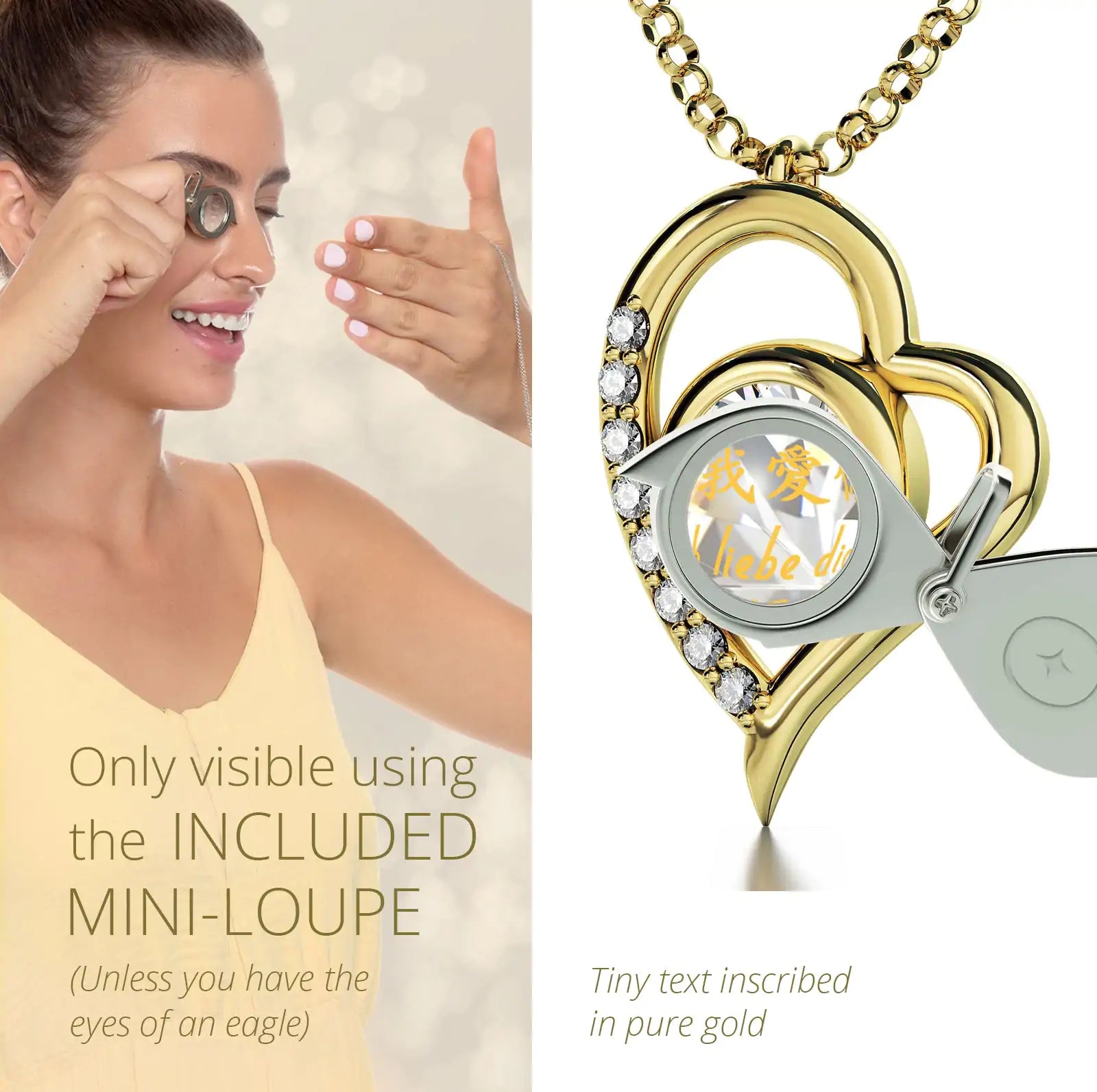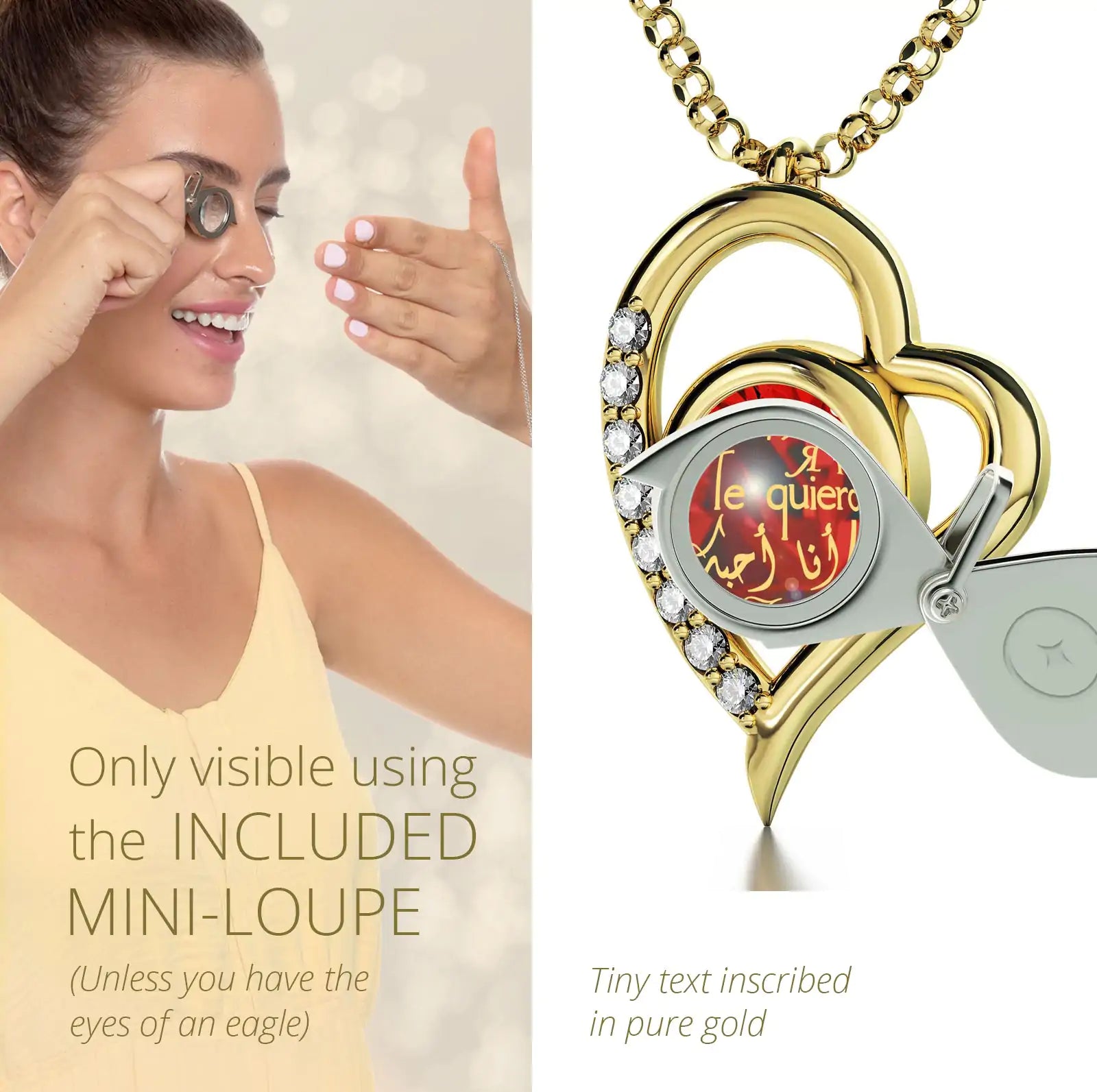Gold Plated Silver I Love You Heart Necklace Set 24k Gold Inscribed in 12 Languages