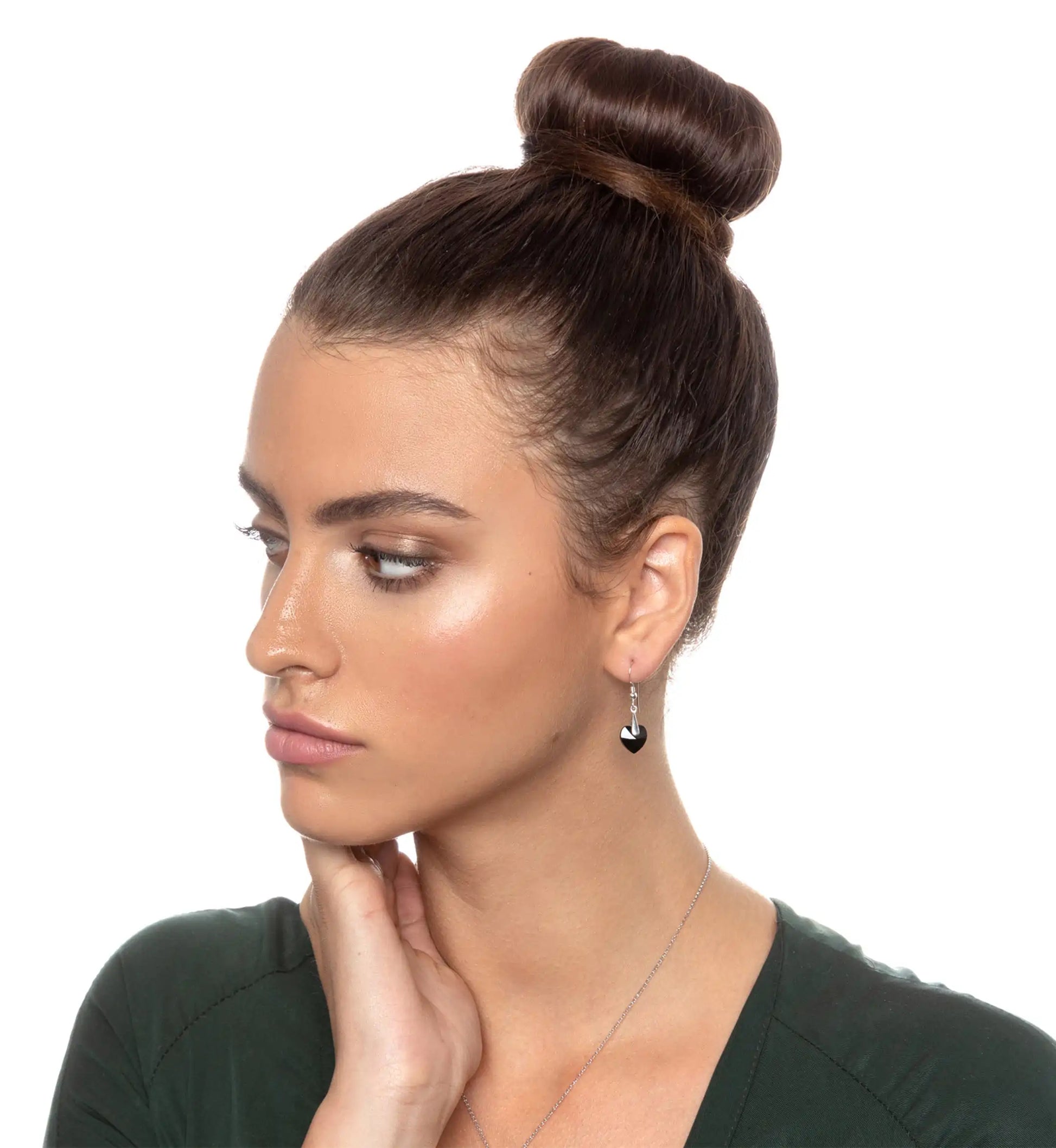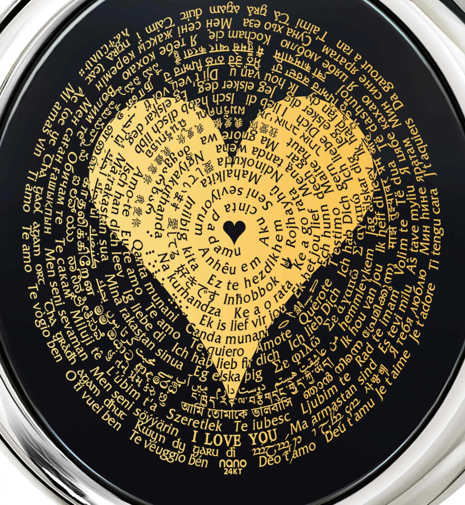 I Love You Necklace Inscribed in 120 Languages with 24k Gold on Onyx and Crystal Heart Earrings Jewelry Set