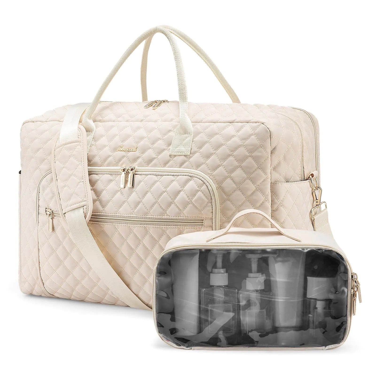 LOVEVOOK Travel Duffle Bag Weekender Bag for Women with Toiletry Bag Carry on Overnight Bag with Laptop Compartment Yoga Gym Bag with Wet Pocket Shoe Bag Hospital Bag for Labor and Delivery Beige