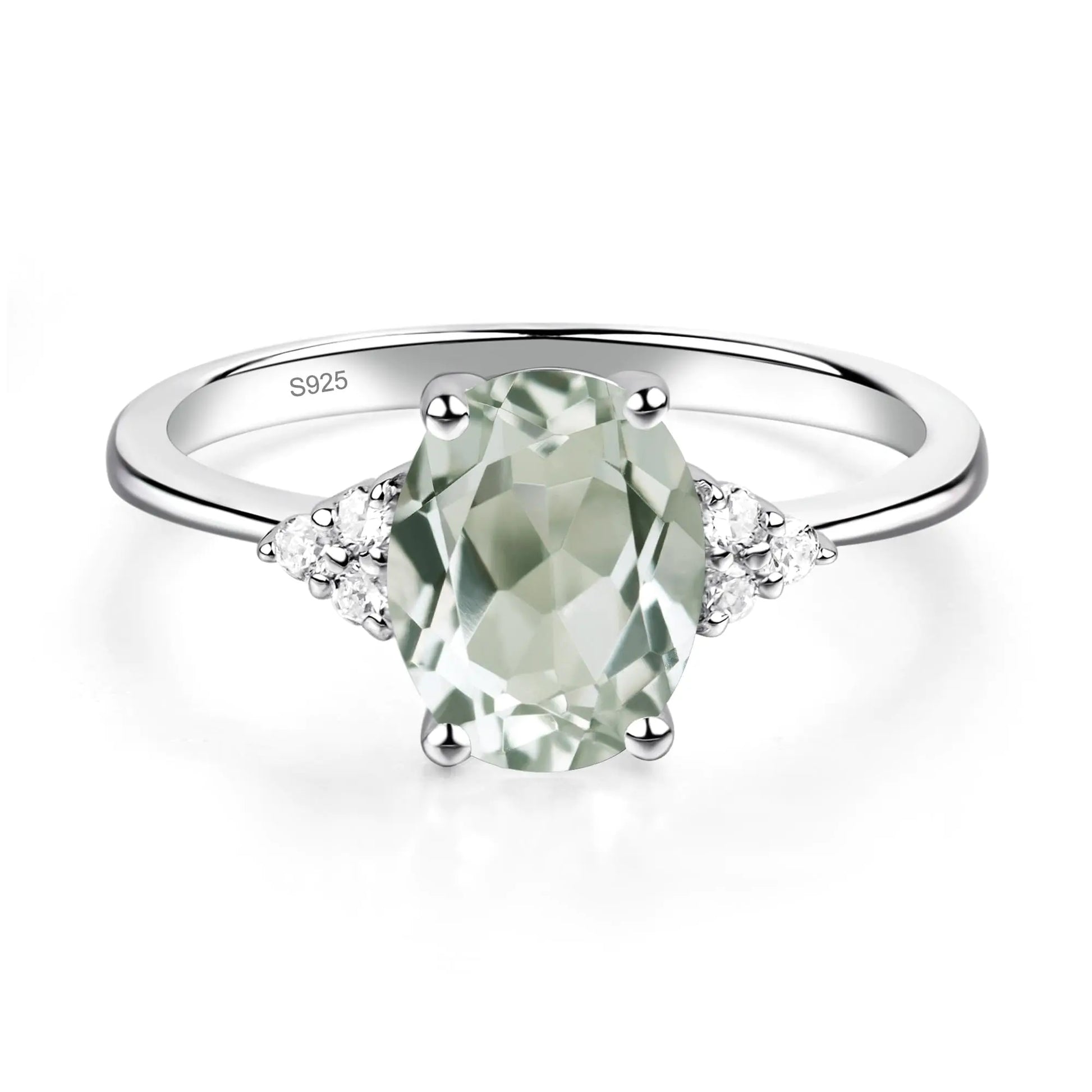 LUO S925 Sterling Silver Oval Shaped 1.77 Carats Green Amethyst Ring Promise Ring Engagement Ring for Women US Size 4
