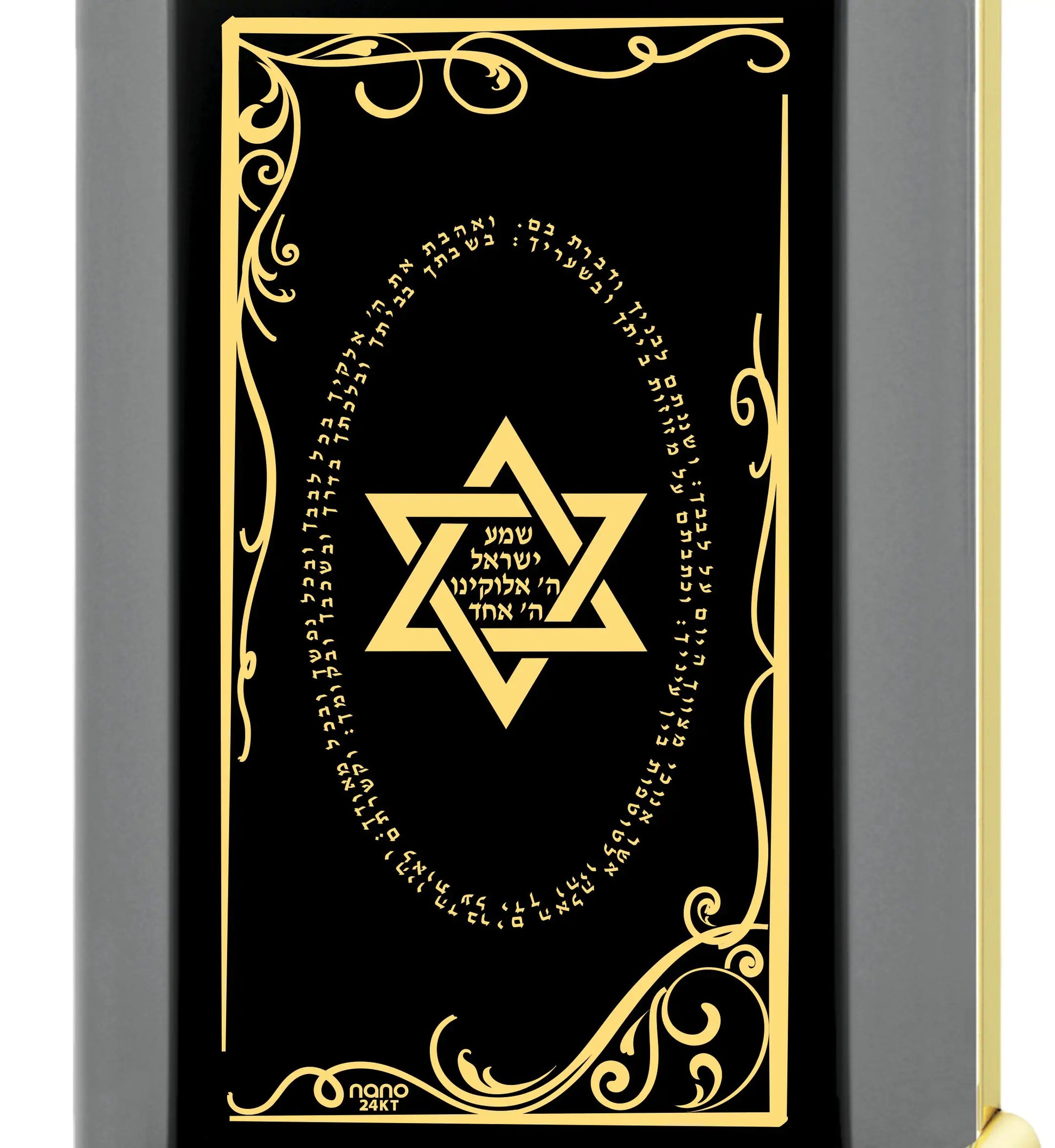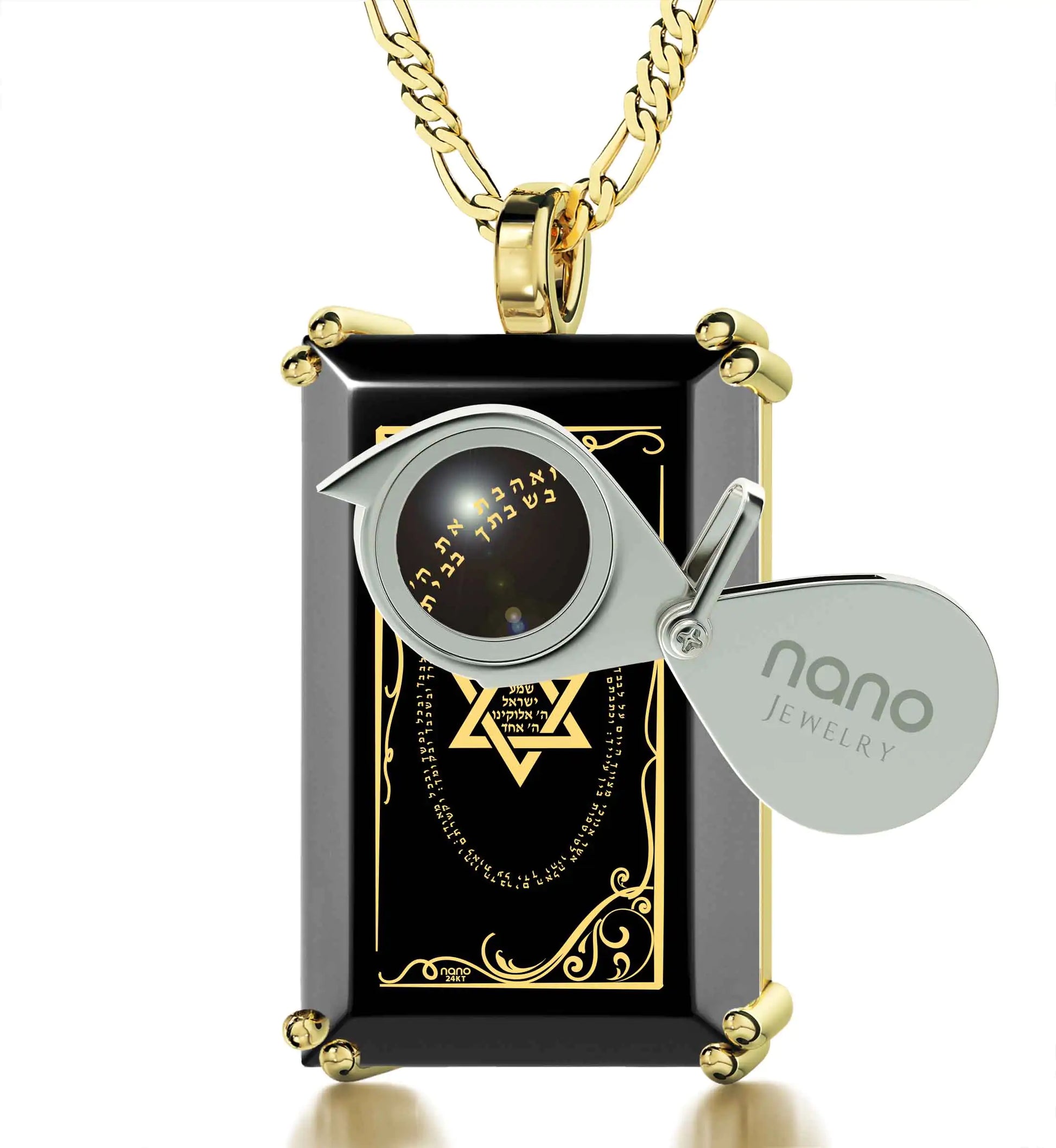 Men's Star of David Necklace Shema Israel Pendant 24k Gold Inscribed on Onyx