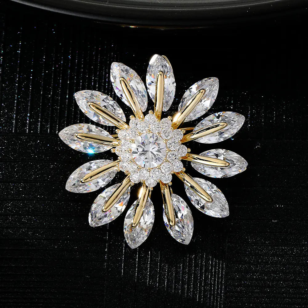 New Rotatable Zircon Daisy Brooch for Coats and Suits