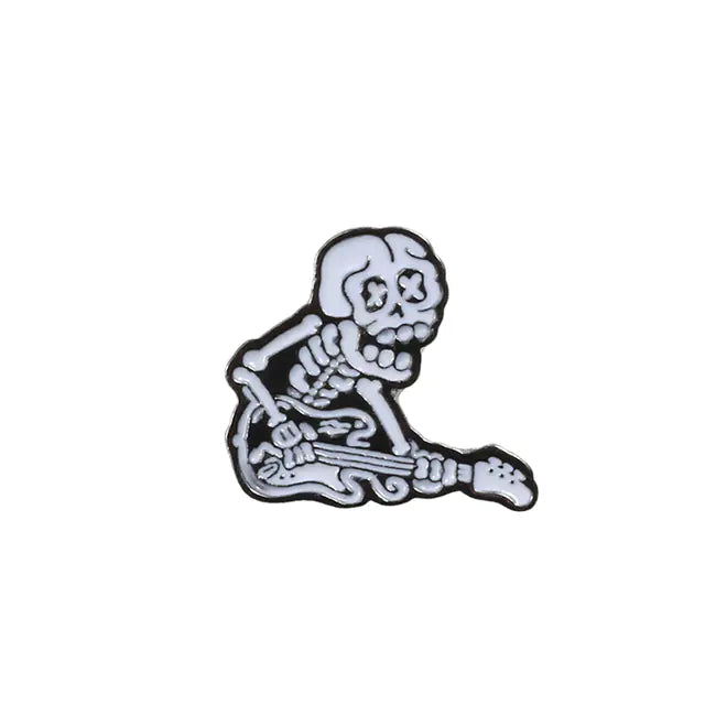 Punk Skull Hammer Brooch with Halloween Theme Elements