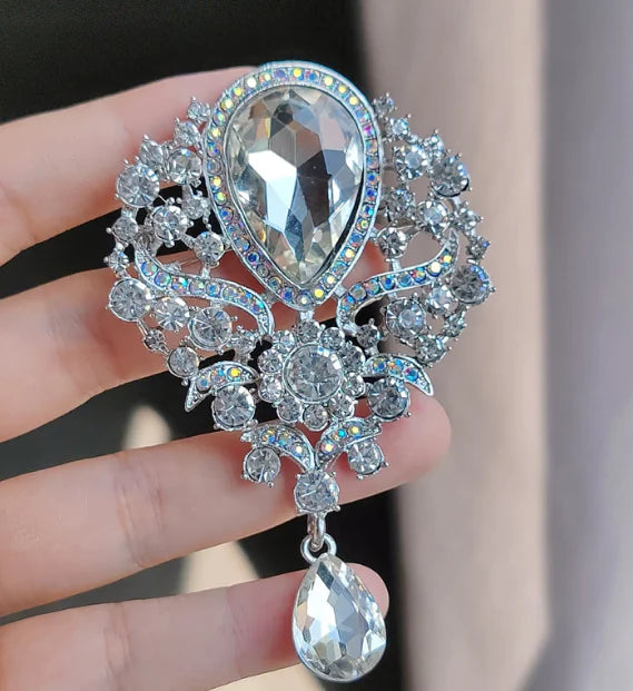Retro Gemstone Glass Crystal Pendant Brooch Jewelry