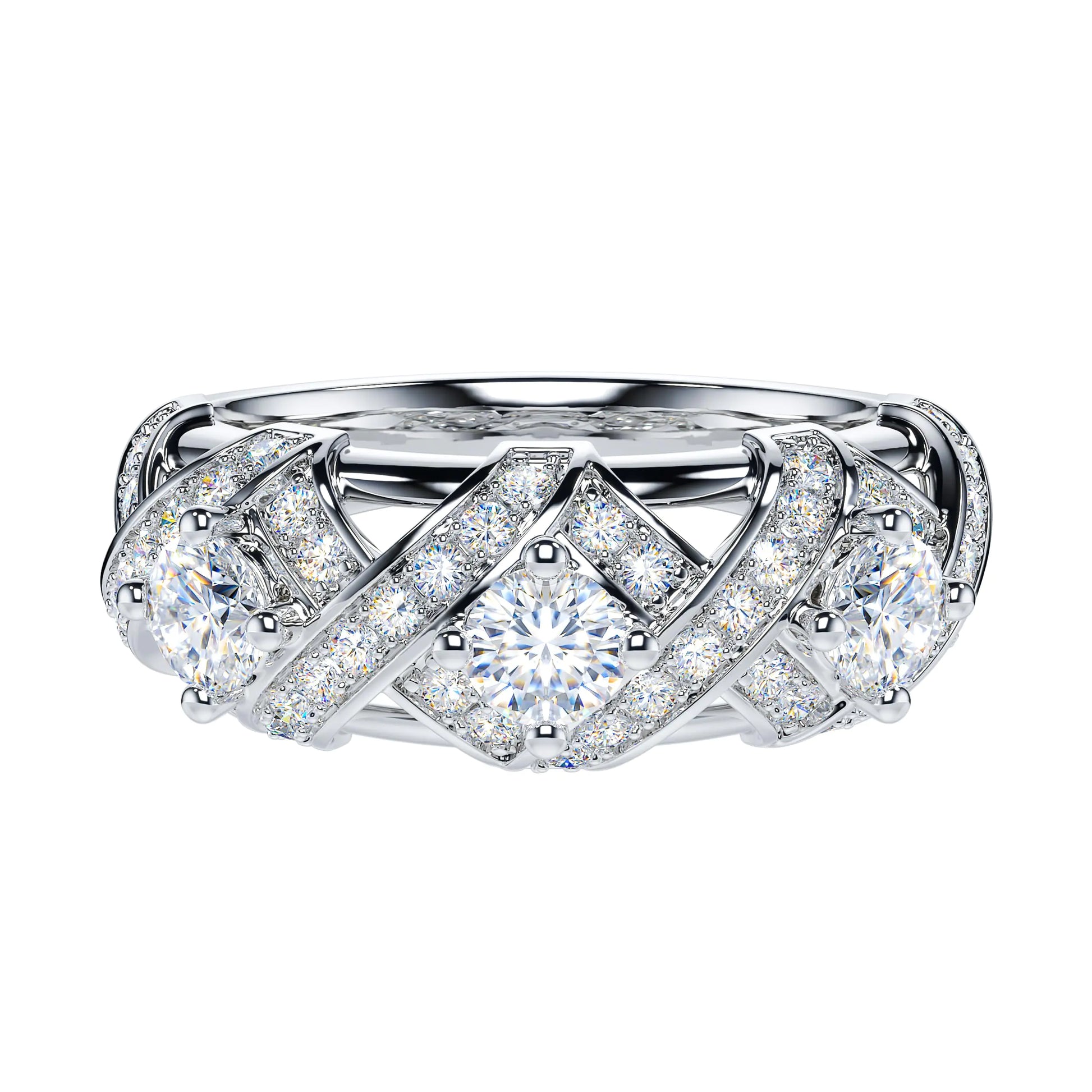 THELANDA Genuine Moissanite Sterling Silver 7.8mm Vintage Luxury Crossover Crown 3-Stone Promise Ring Wedding Ring For Her (6.5)